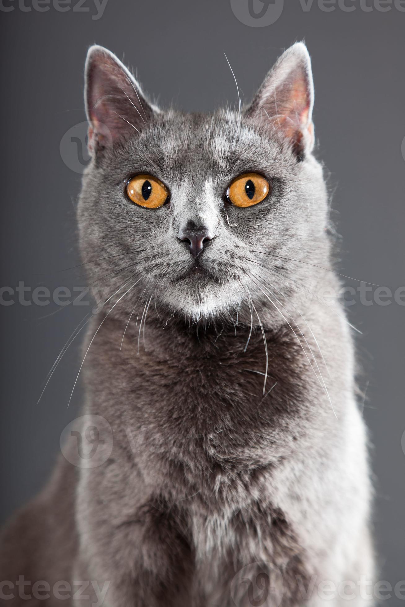 Grey Chartreux Cat With Yellow Orange Eyes 1429173 Stock Photo At Vecteezy